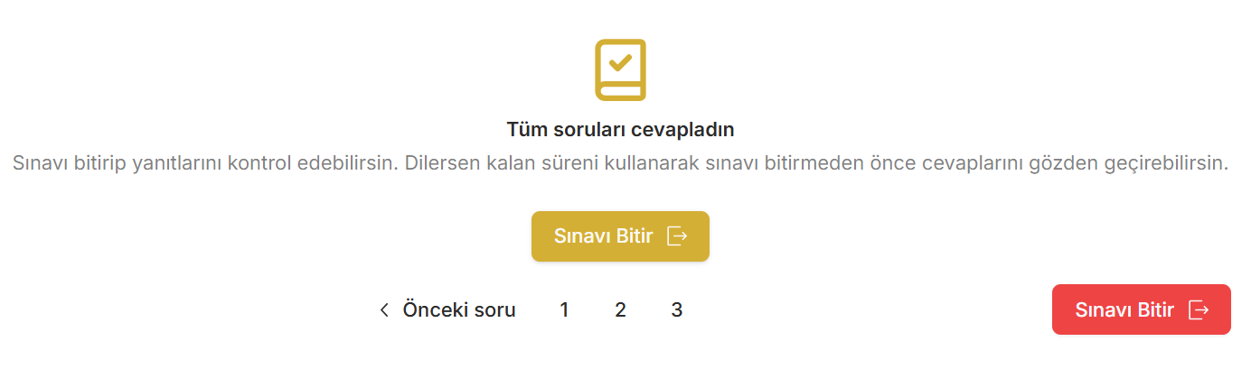 - Önceki Sorulara Dönüş: Öğrencinin önceden cevaplamış olduğu sorulara geri dönüş hakkı olup olmadığına karar verebilirsiniz. Aktifleştirildiğinde, öğrenciler daha önce cevapladıkları veya boş bıraktıkları sorulara geri dönebilir ve cevaplarını değiştirebilir.