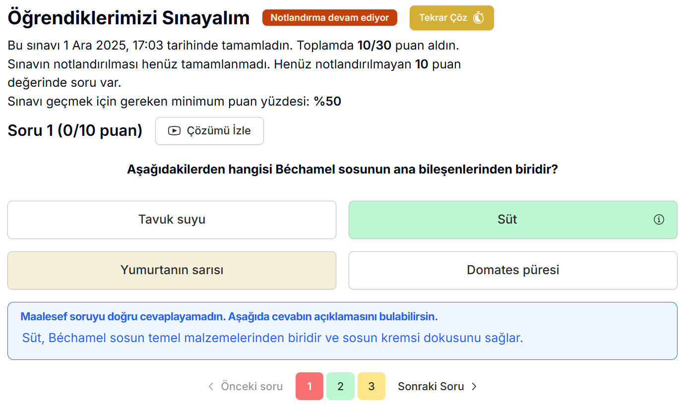 Sınav deneyimini görmek için bir öğrenci hesabıyla giriş yapmanız gerekmektedir. Bunu yapmak için tercih ettiğiniz bir e-posta adresini dersinize ücretsiz olarak ekleyebilirsiniz. :::