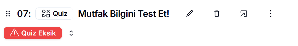 İnteraktif Soru seçtiyseniz, açıklama henüz girilmediğinden “Quiz Eksik” uyarısı görünür.