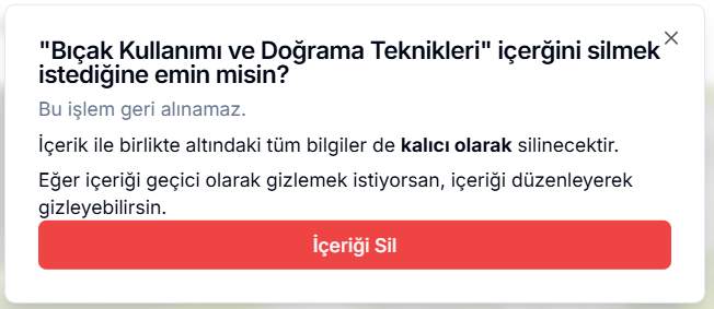 Çöp Kutusu İkonu: Çöp Kutusu İkonu: Videonuzu dersinizden kaldırmak için kullanılır. İkona tıkladıktan sonra açılan İçeriği Sil butonuyla videoyu kalıcı olarak silebilirsiniz.