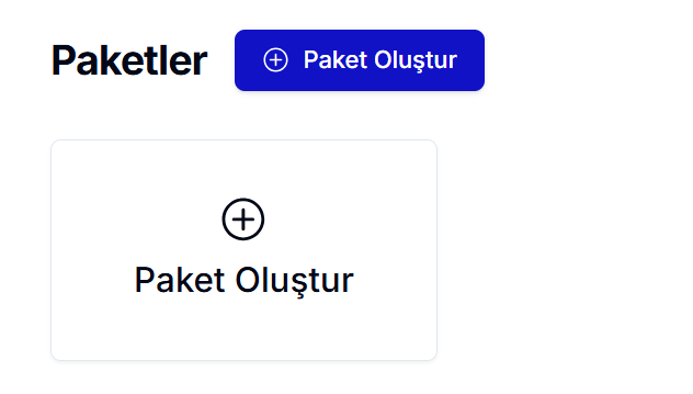 Yeni bir paket oluşturmak için Paket Oluştur butonuna tıklamanız yeterlidir.