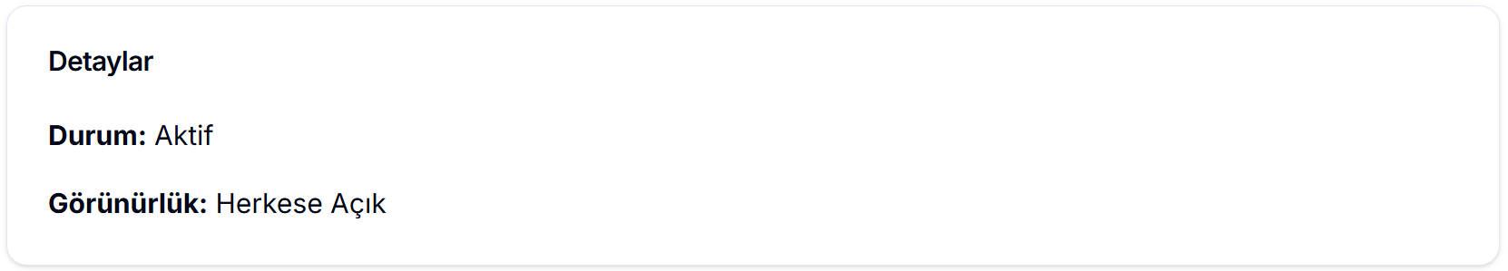 Detaylar kısmında her liste için ek bilgiler ve durum ayarları görüntülenebilir: